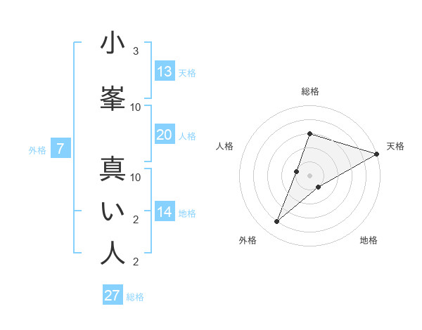 小峯 真い人さんを姓名の画数から五運を鑑定