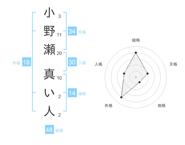 小野瀬 真い人さんを姓名の画数から五運を鑑定