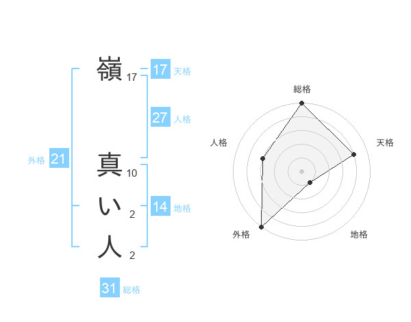 嶺 真い人さんの外格は21画の5点!
