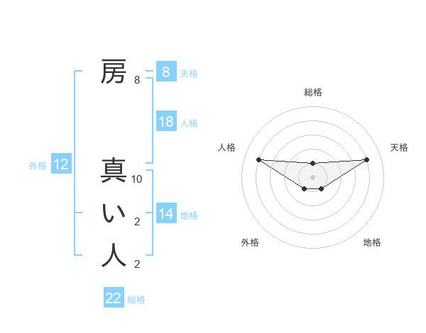 房 真い人さんの総格は22画の1点!