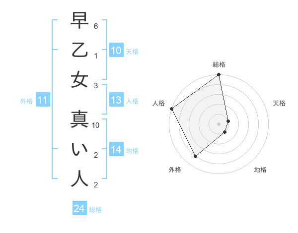 早乙女 真い人さんを姓名の画数から五運を鑑定
