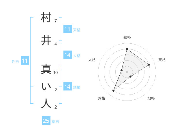 村井 真い人さんの総格は25画の4点!