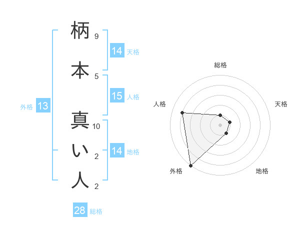 柄本 真い人さんを姓名の画数から五運を鑑定