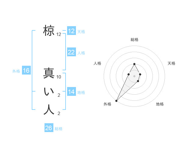 椋 真い人さんの総格は26画の2点!