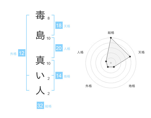 毒島 真い人さんの天格は18画の4点!