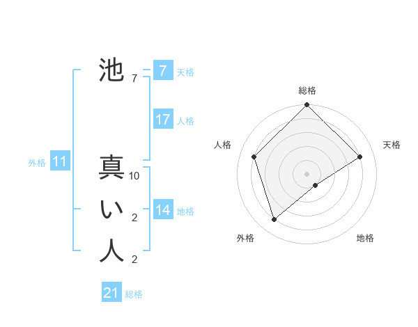 池 真い人さんの総格は21画の5点!