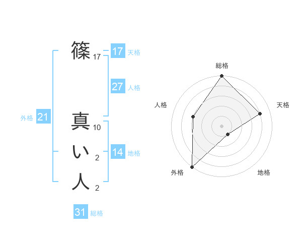 篠 真い人さんの外格は21画の5点!