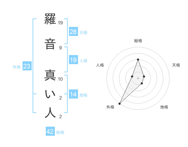 羅音 真い人さんの外格は23画の5点!