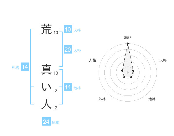 荒 真い人さんの総格は24画の5点!