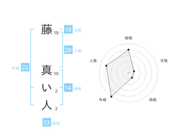 藤 真い人さんの外格は23画の5点!