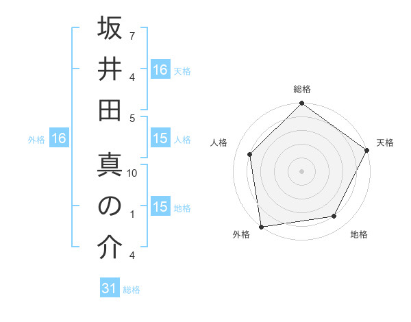 坂井田 真の介さんを姓名の画数から五運を鑑定