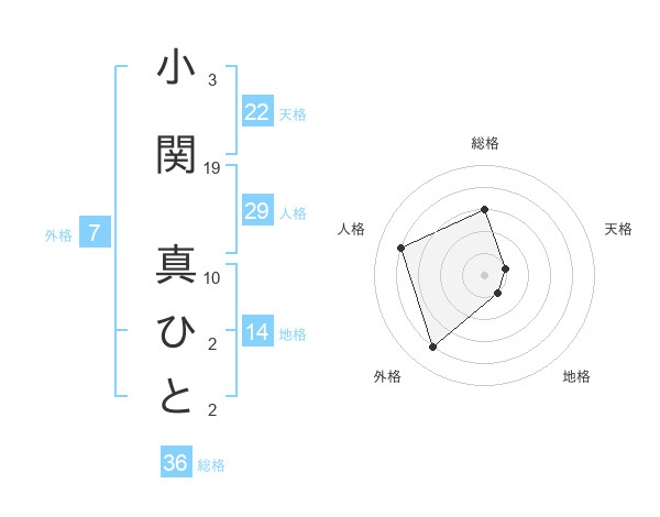 小関 真ひとさんを姓名の画数から五運を鑑定