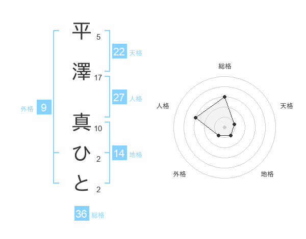 平澤 真ひとさんを姓名の画数から五運を鑑定