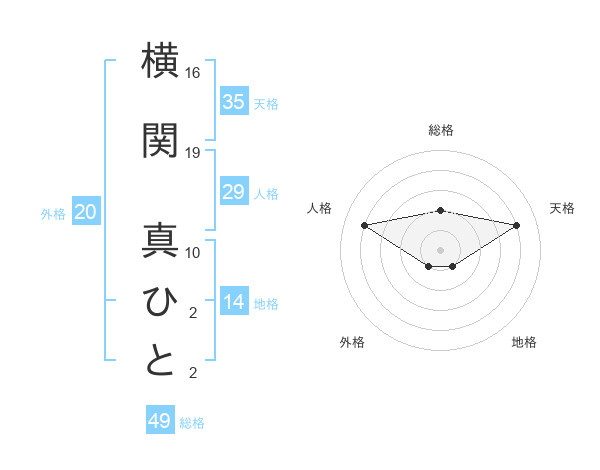 横関 真ひとさんを姓名の画数から五運を鑑定