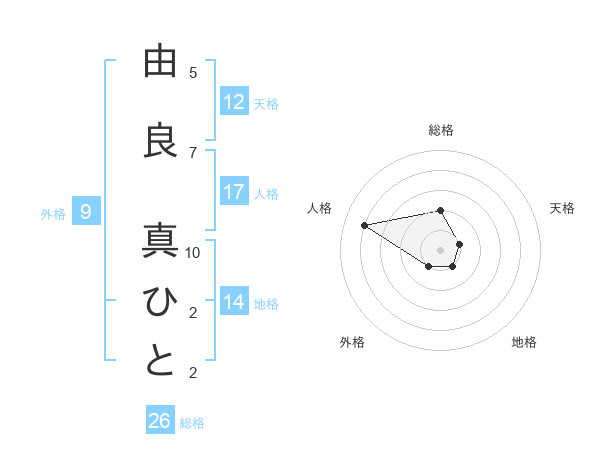 由良 真ひとさんを姓名の画数から五運を鑑定