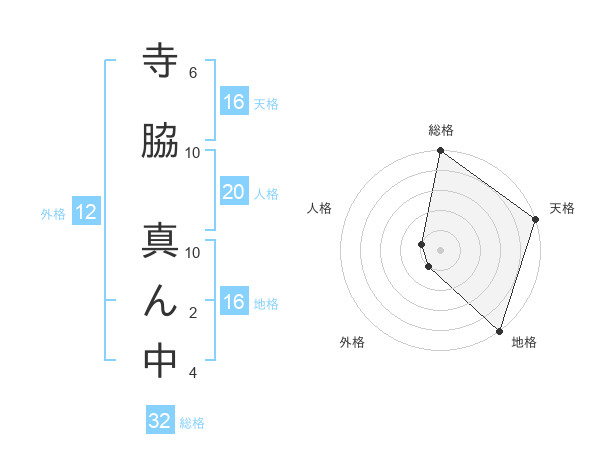 寺脇 真ん中さんの天格は16画の5点!