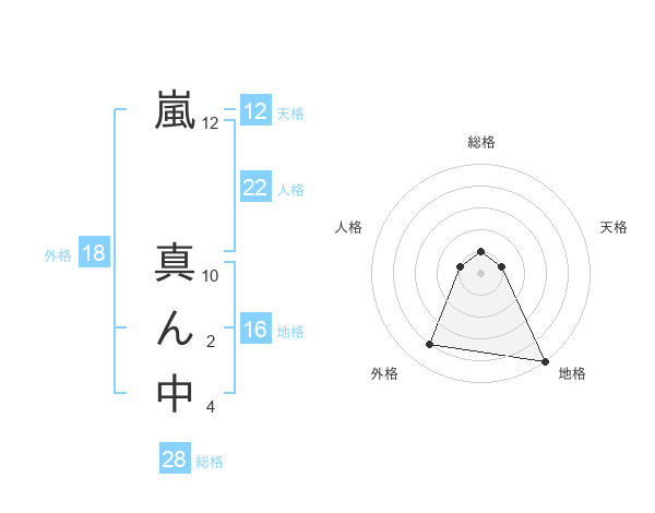 嵐 真ん中さんの総格は28画の1点!