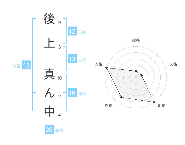 後上 真ん中さんの総格は28画の1点!
