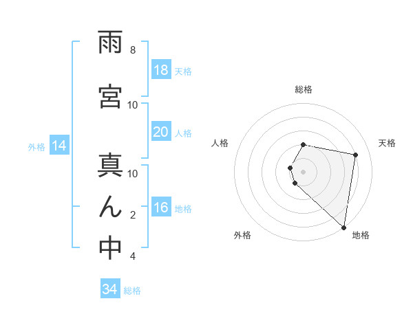 雨宮 真ん中さんの天格は18画の4点!