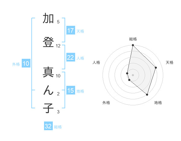 加登 真ん子さんの天格は17画の4点!