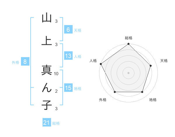 山上 真ん子さんを姓名の画数から五運を鑑定