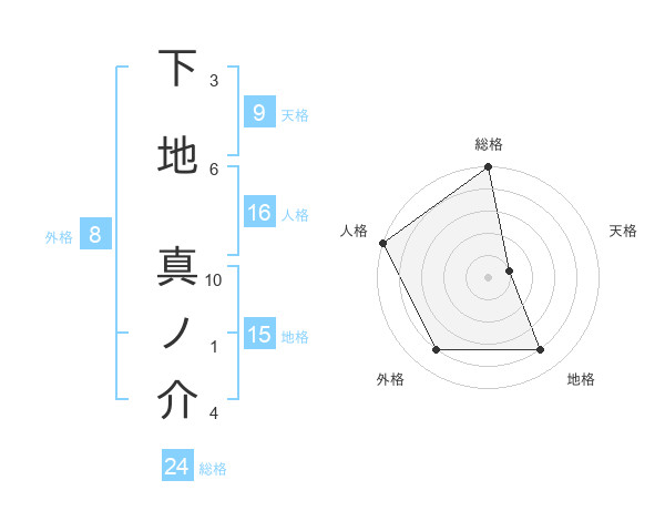 下地 真ノ介さんの総格は24画の5点!