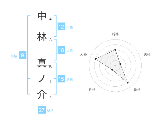 中林 真ノ介さんを姓名の画数から五運を鑑定