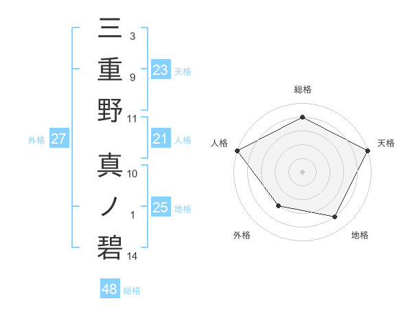 三重野 真ノ碧さんを姓名の画数から五運を鑑定