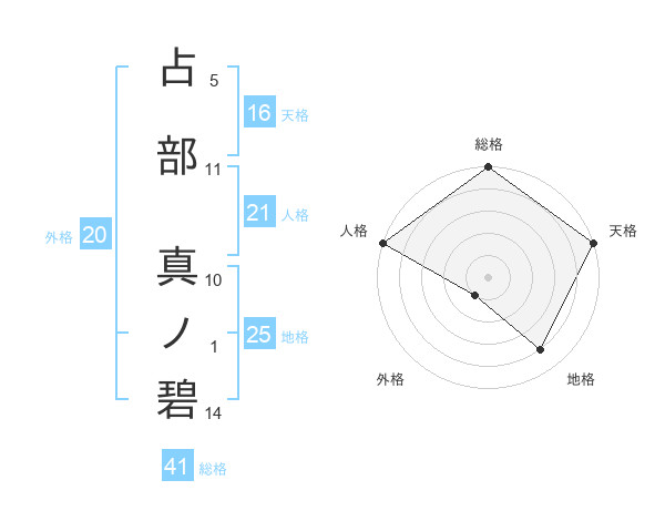 占部 真ノ碧さんの天格は16画の5点