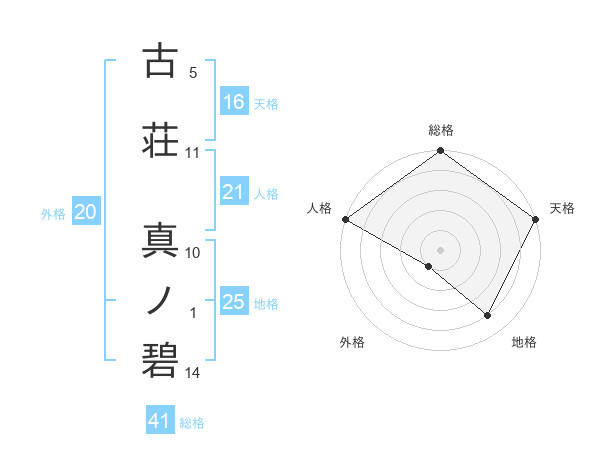 古荘 真ノ碧さんを姓名の画数から五運を鑑定