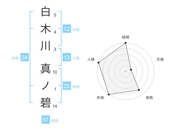 白木川 真ノ碧さんの総格は37画の5点!