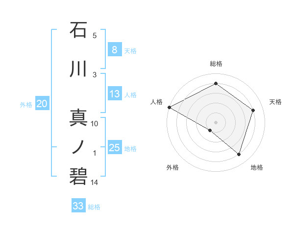 石川 真ノ碧さんの天格は8画の4点!