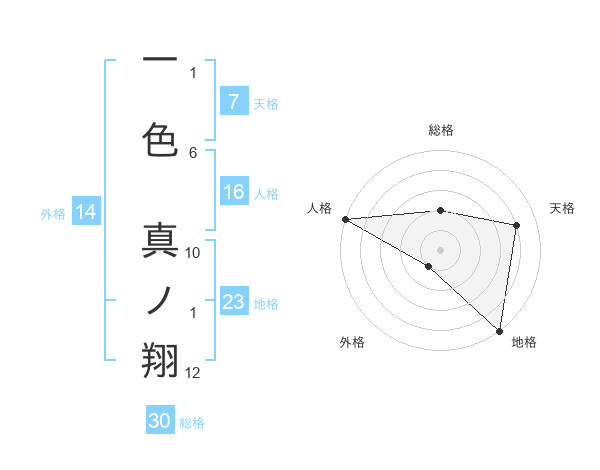 一色 真ノ翔さんの地格は23画の5点!