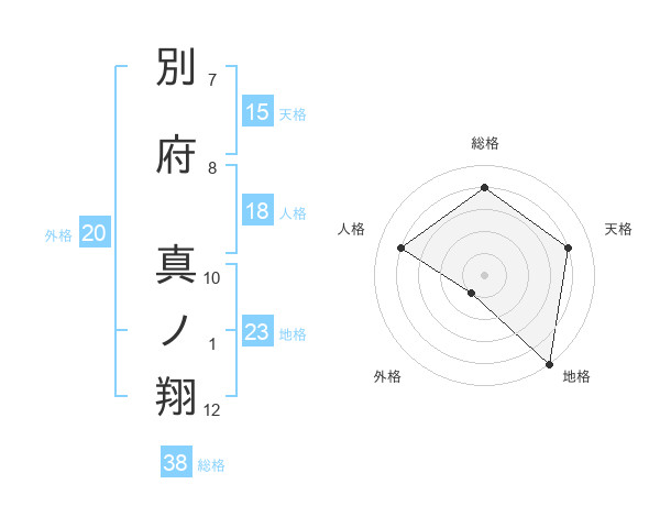 別府 真ノ翔さんの地格は23画の5点!