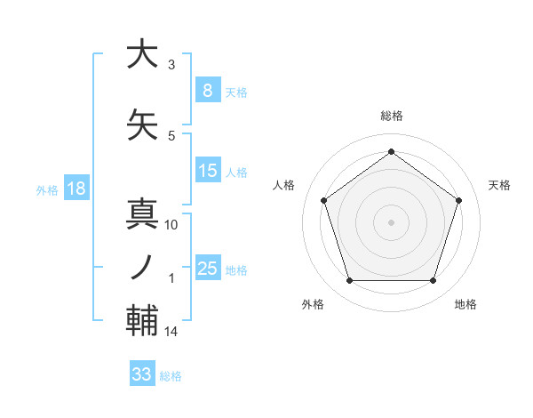 大矢 真ノ輔さんの総格は33画の4点!