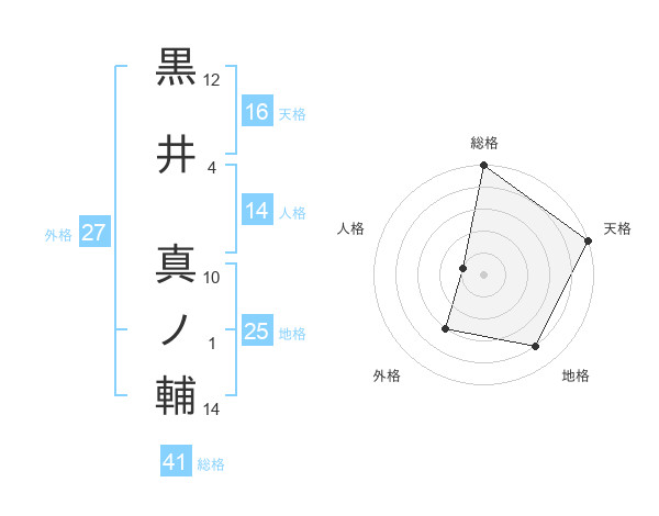 黒井 真ノ輔さんの天格は16画の5点!