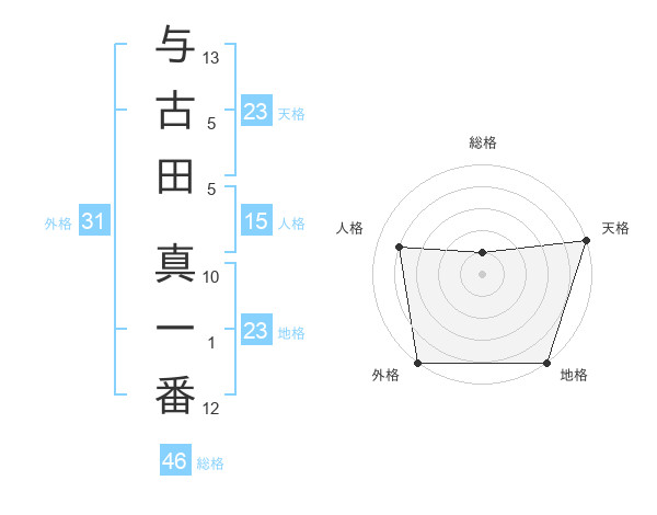 与古田 真一番さんを姓名の画数から五運を鑑定