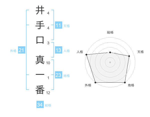 井手口 真一番さんを姓名の画数から五運を鑑定