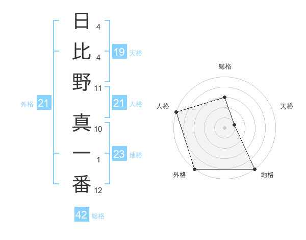 日比野 真一番さんを姓名の画数から五運を鑑定