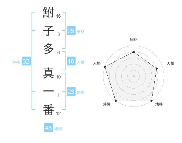鮒子多 真一番さんを姓名の画数から五運を鑑定