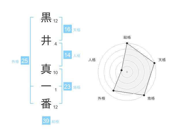 黒井 真一番さんを姓名の画数から五運を鑑定