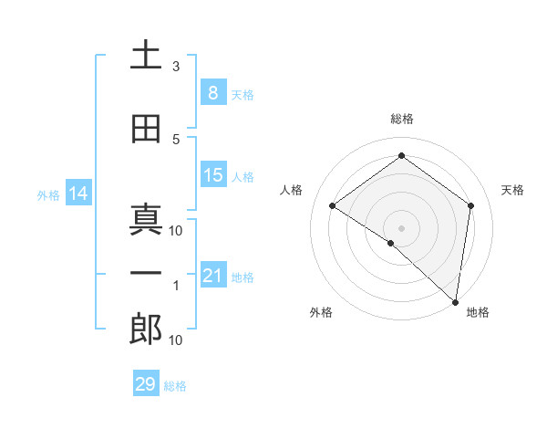 土田 真一郎さんの総格は29画の4点!