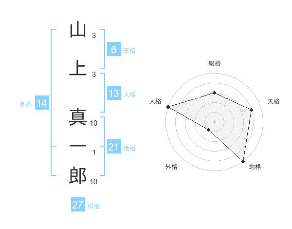 山上 真一郎さんの総格は27画の3点!