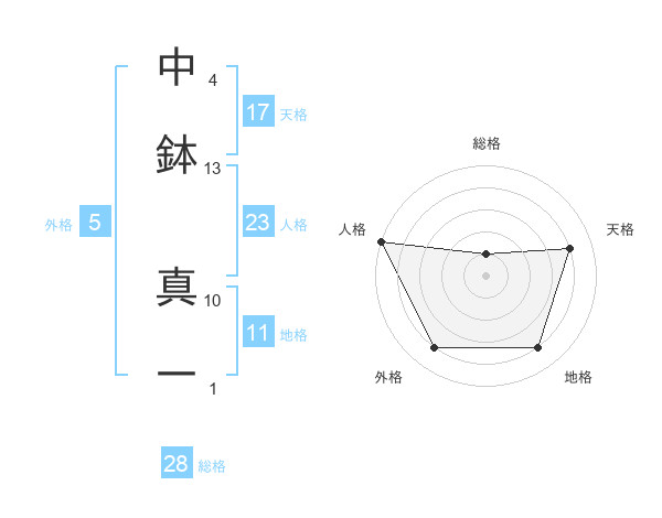 中鉢 真一さんの総格は28画の1点!