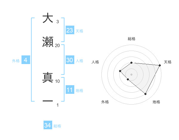 大瀬 真一さんを姓名の画数から五運を鑑定