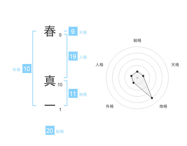 春 真一さんの総格は20画の1点!