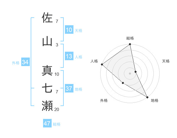 佐山 真七瀬さんの総格は47画の5点