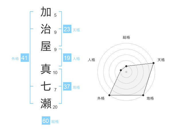 加治屋 真七瀬さんの天格は23画の5点