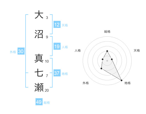 大沼 真七瀬さんを姓名の画数から五運を鑑定