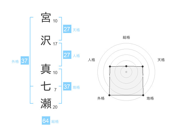 宮沢 真七瀬さんを姓名の画数から五運を鑑定